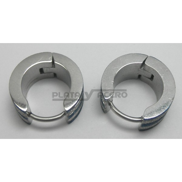 Exclusivo diseño de pendiente de aro en acero con varias franjas.